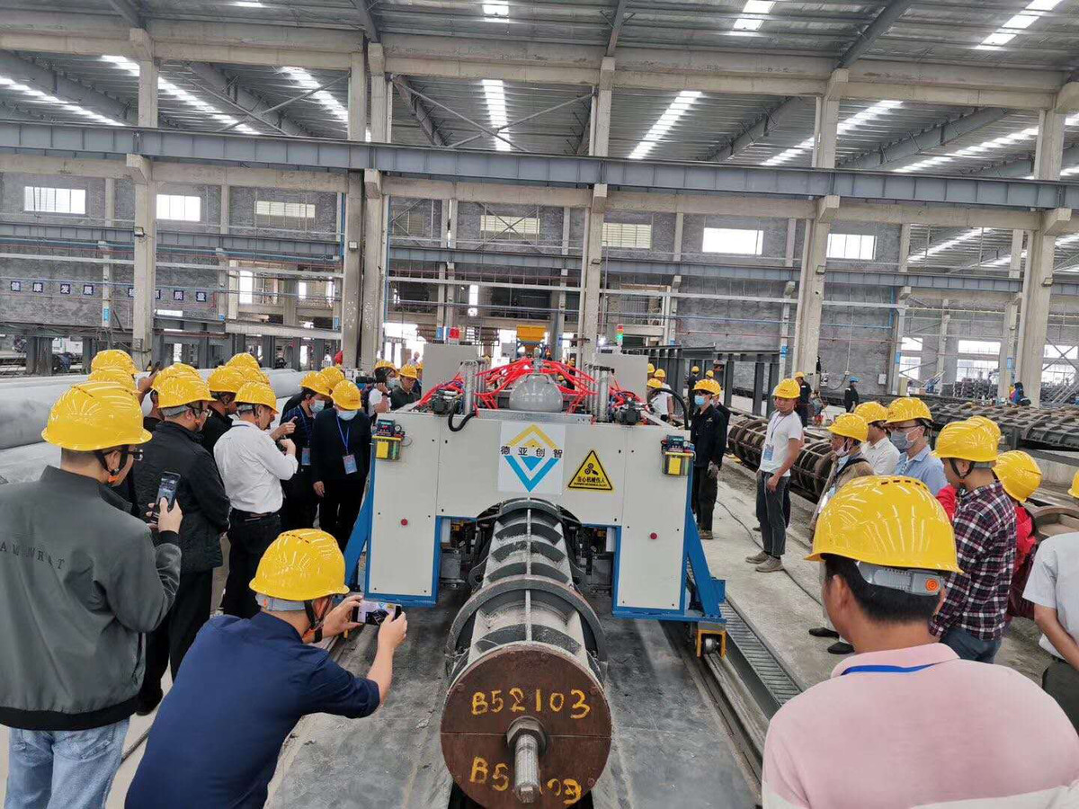 2020年10月25日广东省水泥制品与外加剂协会组织到四会市华誉联合管桩建材有限公司参观开云网页版登录入口创智PHC管桩智能化生产线。参观现场会员们被全自动喂料机、张拉机、放张机等深深吸引;在合/拆模机与全自动裙板一体机前,更是驻足不前。会员们对管桩设备智能化程度、实用性与安全可靠性赞不绝口。参观后更是多家企业表示需要与开云网页版登录入口创智进行下一步的商务洽谈。