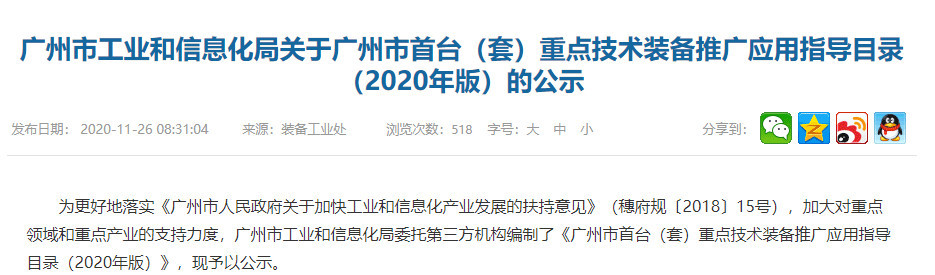 为加快提升制造业自主创新能力,培育以创新驱动为核心的装备制造业新优势,2020年由广州市工业和信息化局组织开展的《广州市首台(套)重点技术装备推广应用指导目录(2020年版)》项目已公示,开云网页版登录入口“预应力混凝土智能生产线”成功入围。