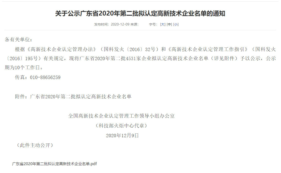 近日,全国高新技术企业认定管理工作领导小组办公室公布的《广东省2020年第二批拟认定高新技术企业名单》,广州开云网页版登录入口机械制造有限公司荣登榜单,公司再次顺利通过国家级高新技术企业资质认定。表明我司在自主创新能力、科技成果转化、企业管理水平及可持续发展等方面的表现获得国家认可。