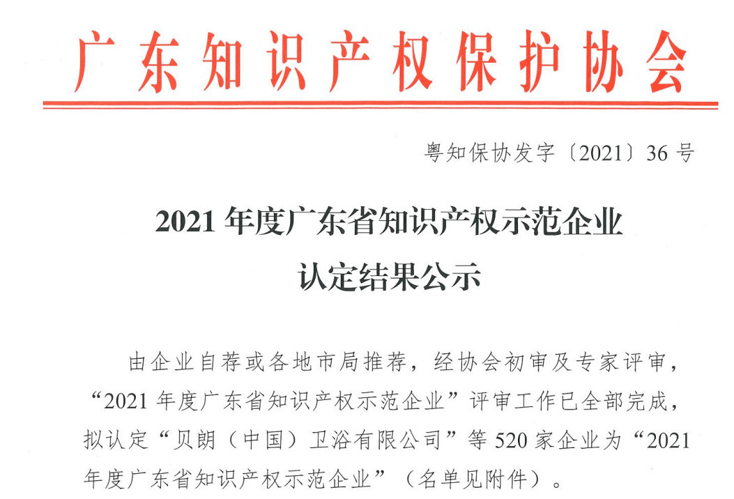 省“知识产权示范企业”是广东省对企业知识产权创造、运用、保护、管理等方面工作的最高荣誉,也是对企业知识产权管理工作的最高评价。