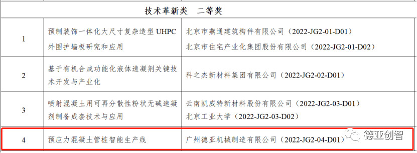 依据《中国混凝土与水泥制品协会混凝土科学技术奖管理办法》,经评审委员会资料与远程会议等综合评审,共36个项目获得2022年度中国混凝土与水泥制品协会混凝土科学技术奖,其中科技进步类22项,技术革新类14项。我司申请的“预应力混凝土管桩智能生产线”成功斩获“技术革新二等奖”。