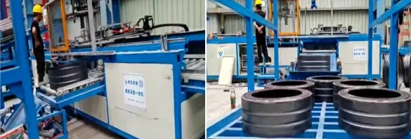 1:全自动裙板一体机是集带钢整平、剪切、移送、上料、卷圆、焊接、成型、组装、出料,裙板生产-裙端板组合-整齐出料于一体的智能化设备。2:设备包含高效电机、精密传动系统、PLC控制系统及耐用裙板成型模具,各部件协同工作,确保高效稳定生产。3:采用模块化设计,布局紧凑合理,便于维护与升级;结构稳定性强,设备使用寿命长且品质稳定。设计理念注重节约人力成本、提升产品品质,提升操作便捷性与安全性。设备市场销售量高,已被三和管桩、建华建材和中淳高科多家大型管桩企业纳入集团集采体系,复采率高,设备得到客户的高度认可。设备采用高品质材料制造,机身整体重量达到13吨左右,控制系统采用优质品牌,经过严格的质量控制,确保长时间使用下依然保持卓越性能,经久耐用。 设备在各种工作环境下都能保持稳定的性能输出,无论是高温还是低温,都能稳定运行,确保工作效率。提供定制服务,根据客户需求接受尺寸定制和特殊需求定制。可生产规格范围300-1200mm。实现全自动化生产,1人代替原来4~6人作业,显著提升生产速度,降低生产周期。减少人工操作,自动剪切、卷圆、成型和焊接技术成熟,采用最新激光焊接,满足各种材质带钢使用,品质优于手工作业。高精度PLC和传感器控制,确保裁剪、卷圆、成型和焊接精度,减少次品率。 全自动化控制系统,实现从原材料上料到成品出料的全程无人干预,一键转换各种规格型号,降低人力成本。直观触控界面,操作流程简化,培训即可上手,提高工作效率。设备结构模块化设计,易于拆卸和组装,便于日常维护与保养,减少停机时间,确保设备长期稳定运行;同时,提供完善的售后服务和技术支持,确保设备在使用过程中得到及时有效的维护。案例一:中铁建(生产规格500-1000mm)
